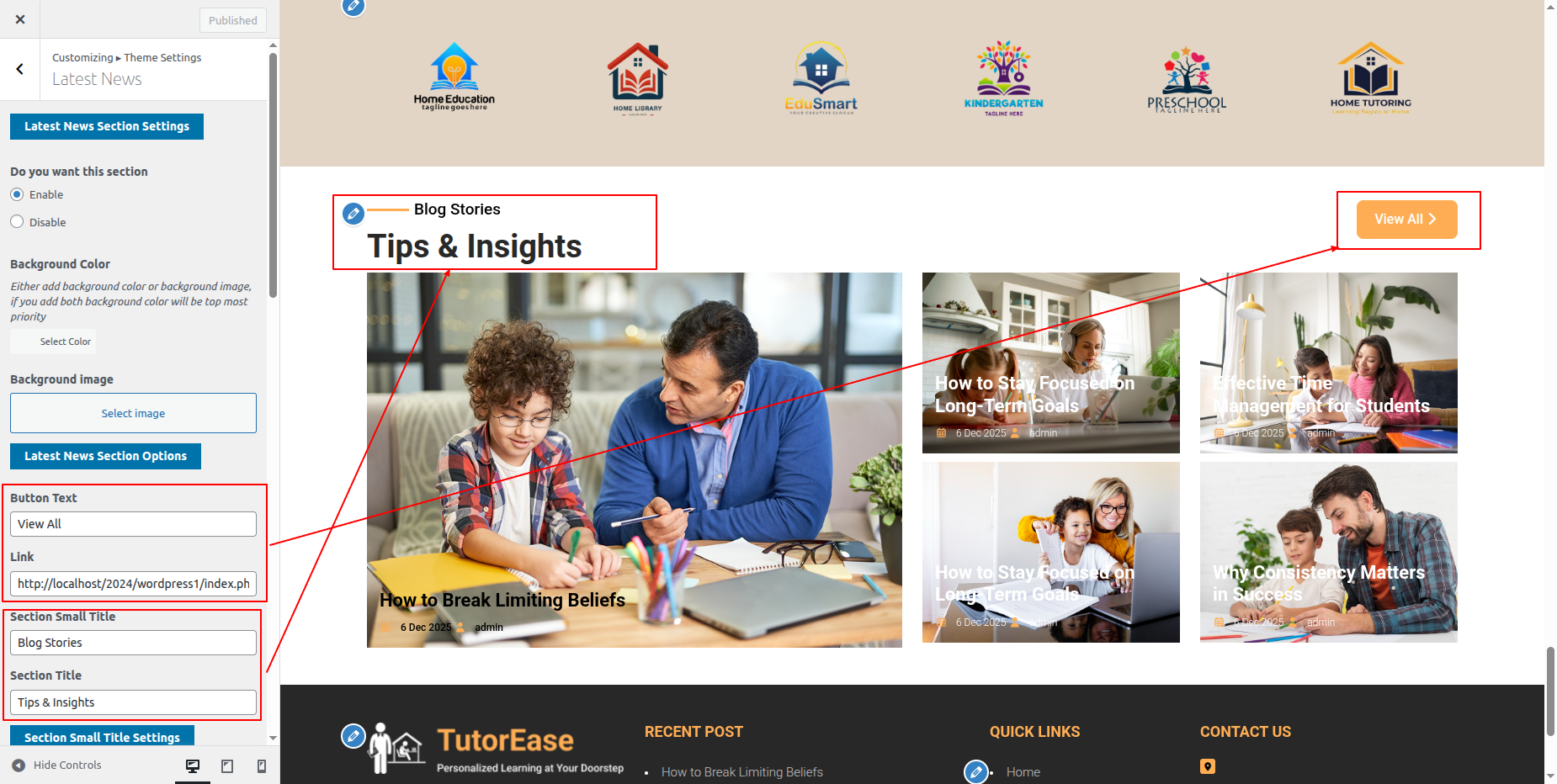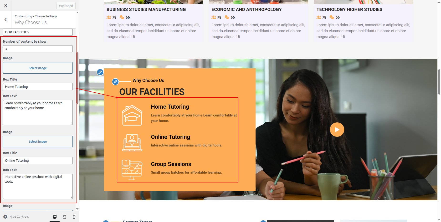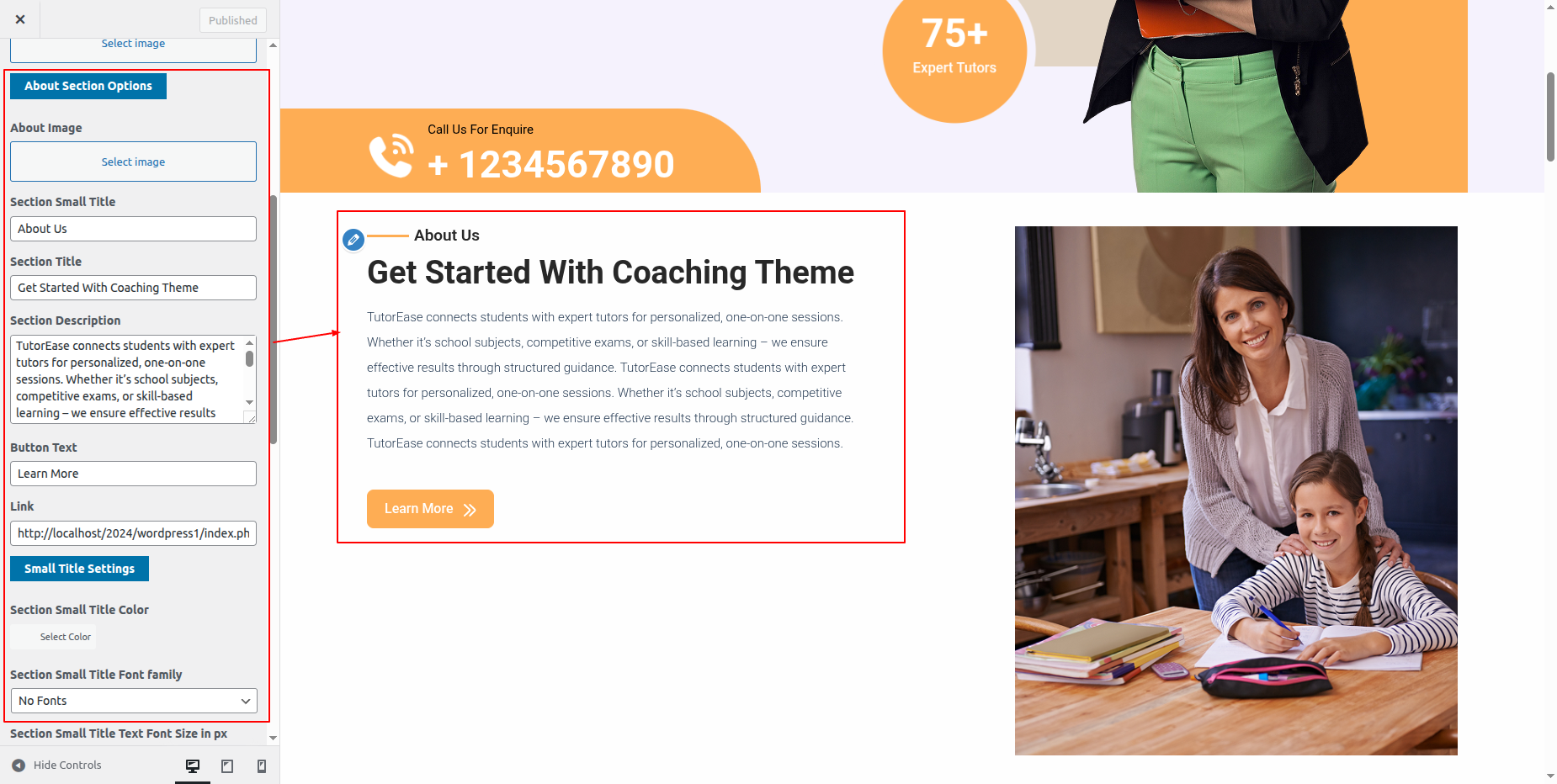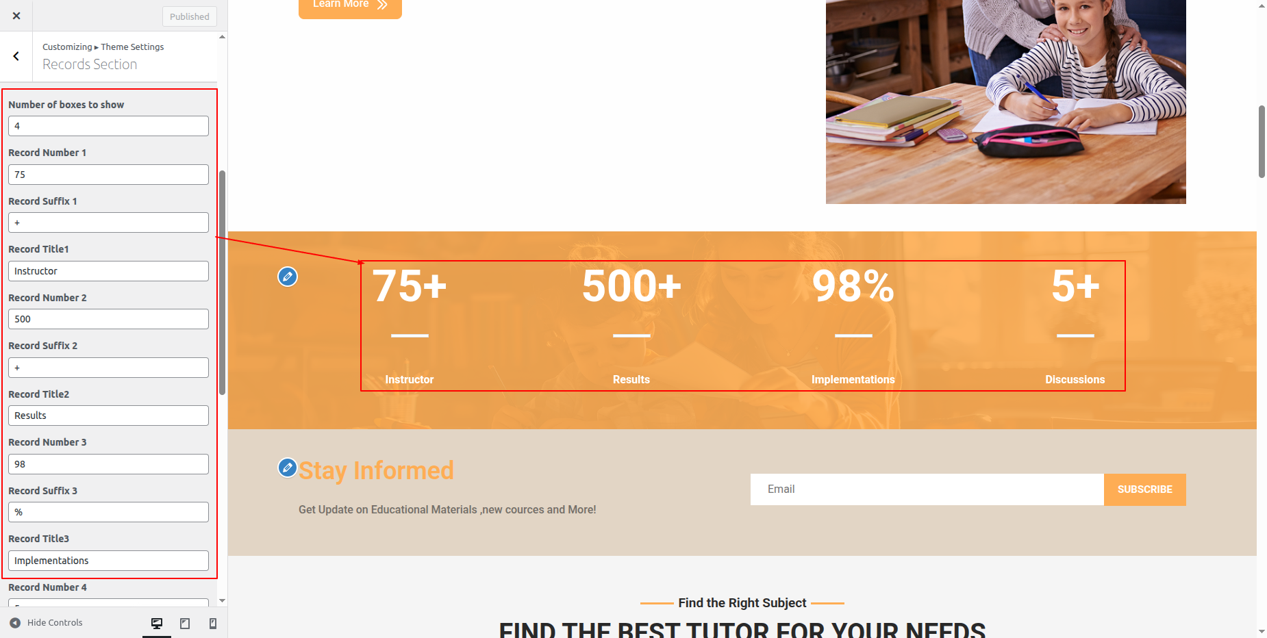 Go to Appearance >> Customize >> Theme Settings >> Tutor Section.