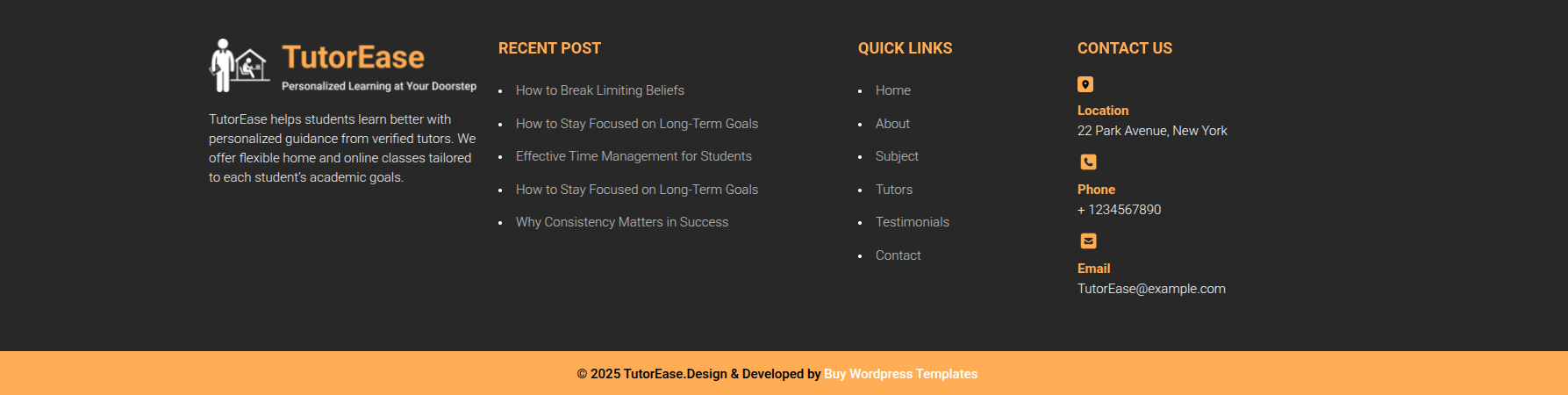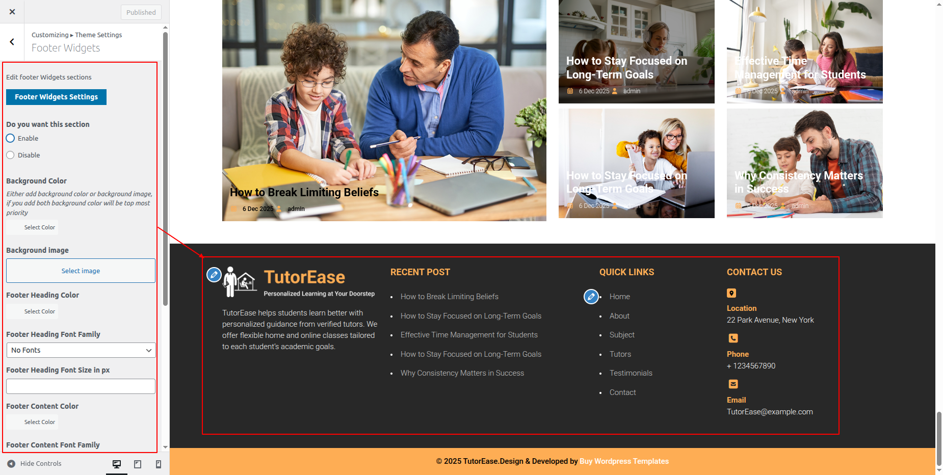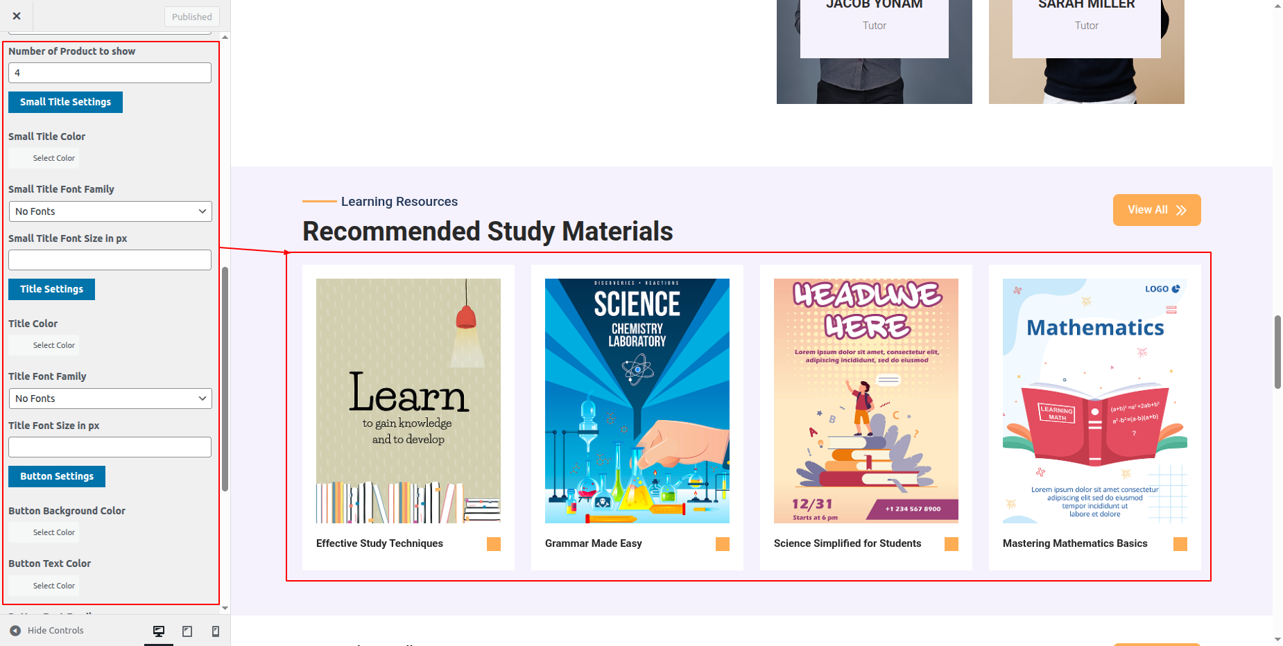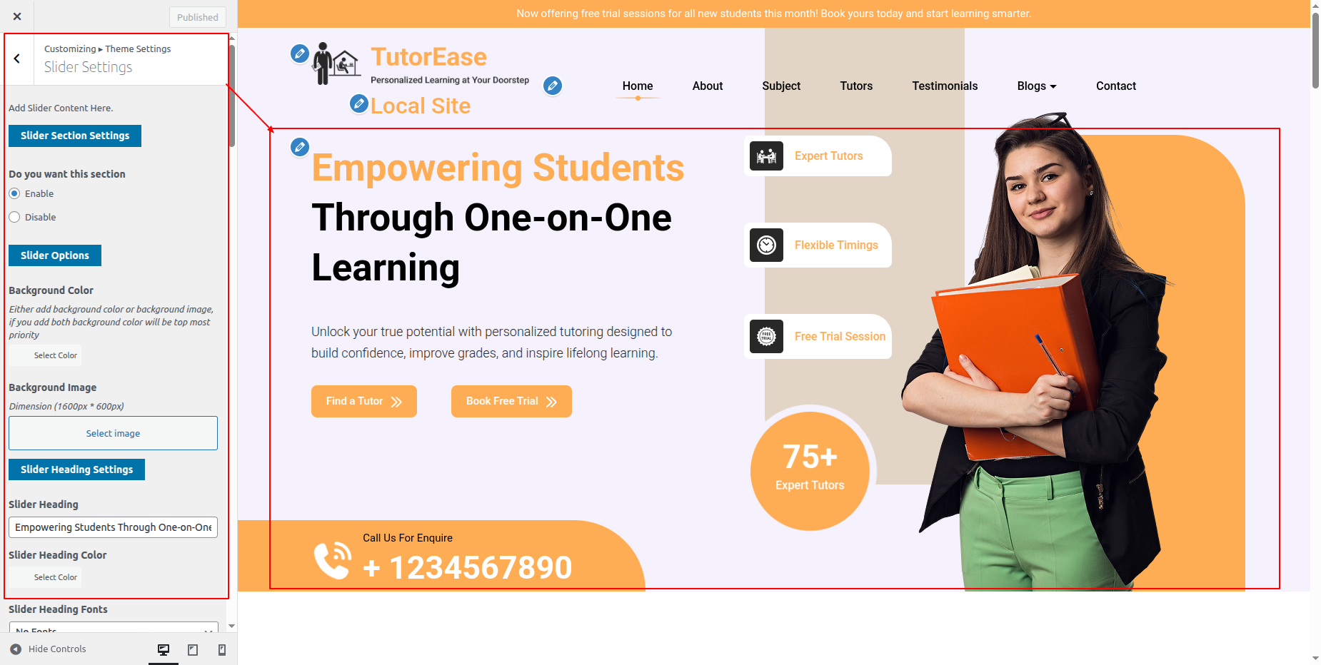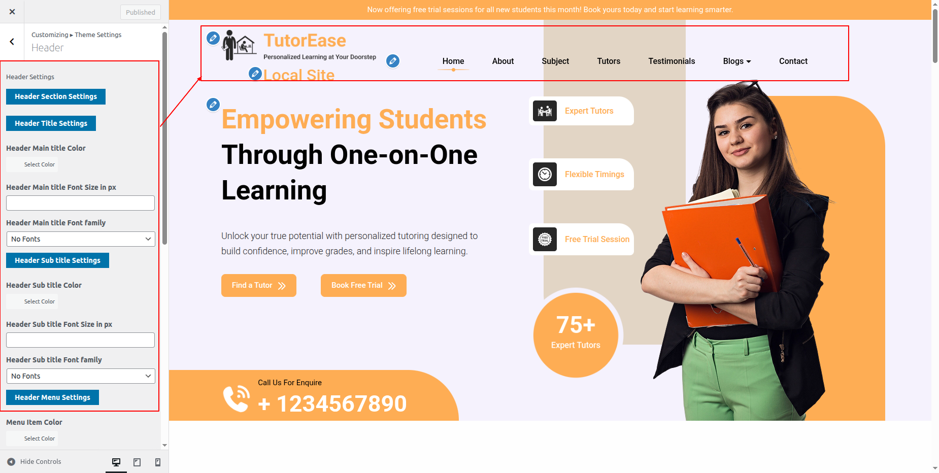 Go to Appearance >> Customize >> Theme Settings >> Tutor Section.