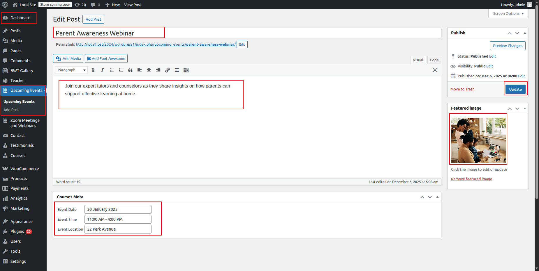 Go to Dashboard >> Events >> Add New