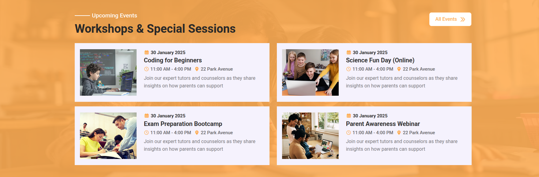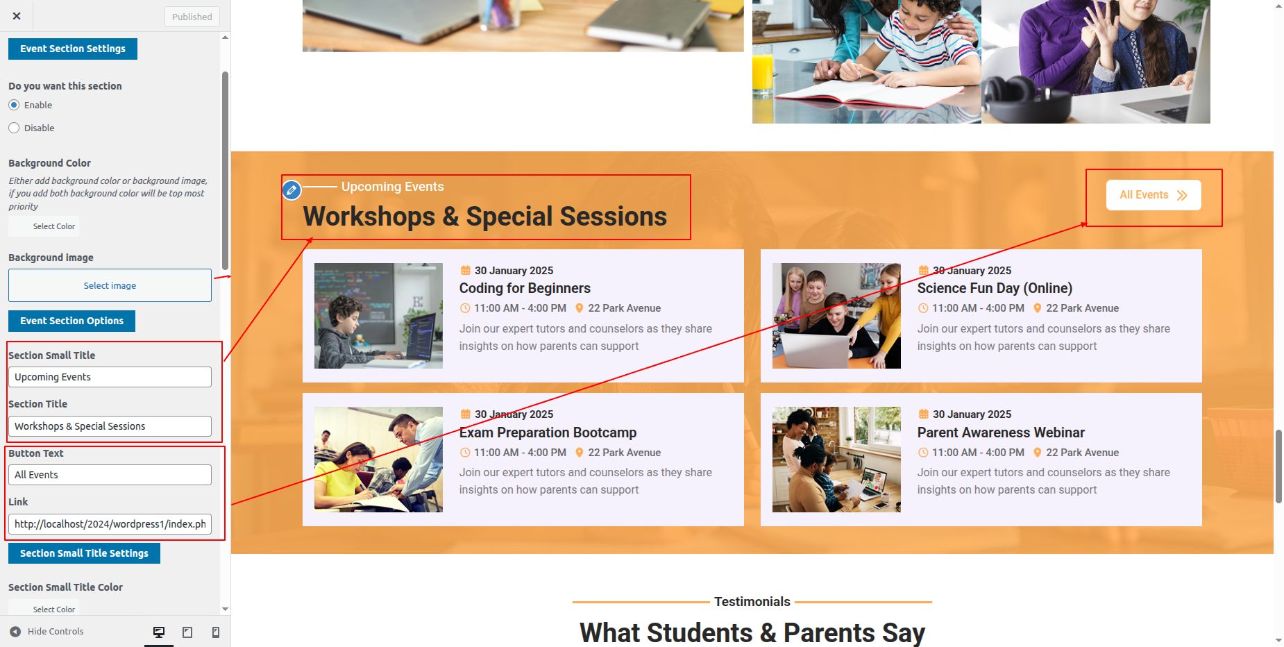Go to Appearance >> Customize >> Theme Settings >>Events Section