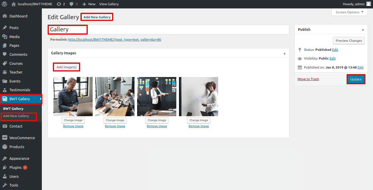 Go to Dashboard >> BWT Gallery >> Add New Gallery