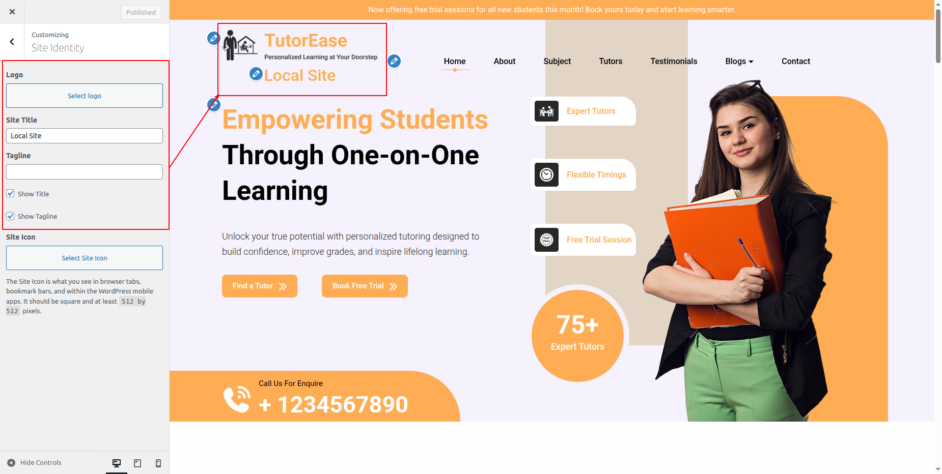 Go to Appearance >> Customize >> Theme Settings >>Site Identity