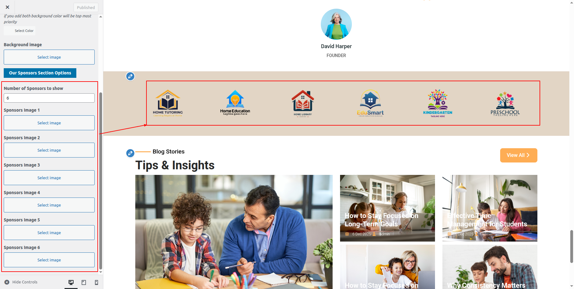 Go to Appearance >> Customize >> Theme Settings >>Our Sponsors