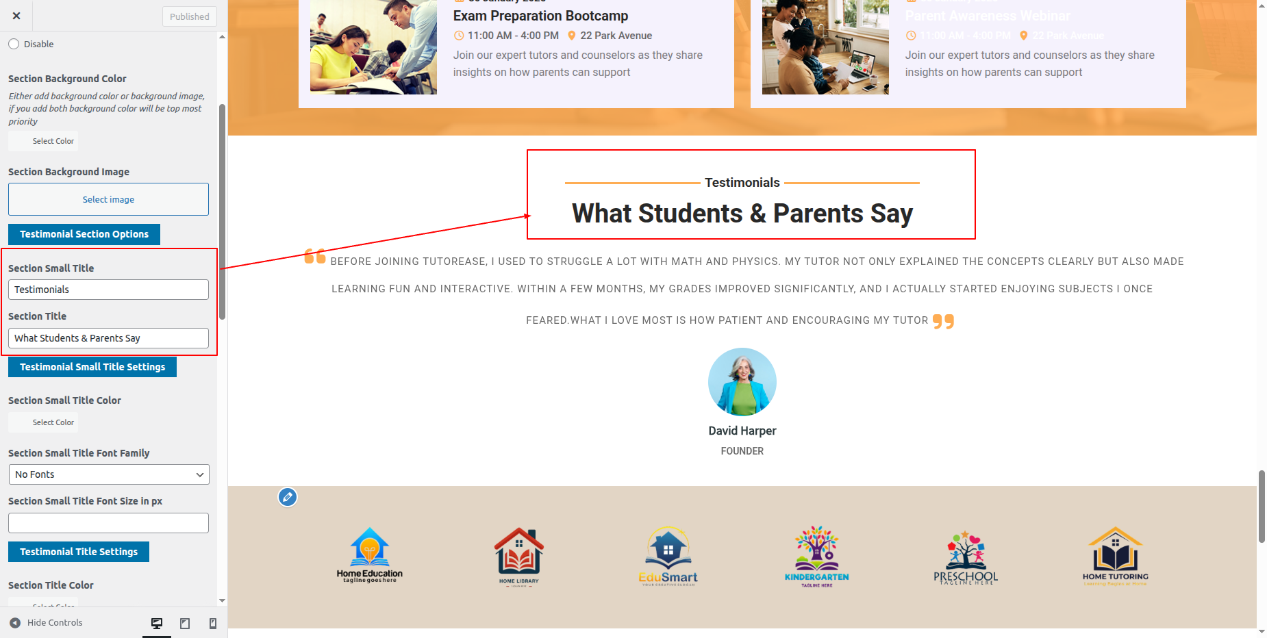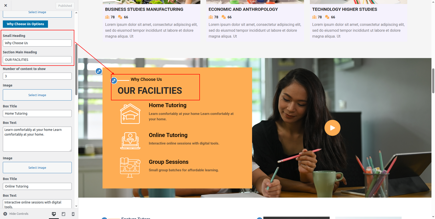 You must first install the "home-tutor-pro posttype" plugin in order to build up this section.