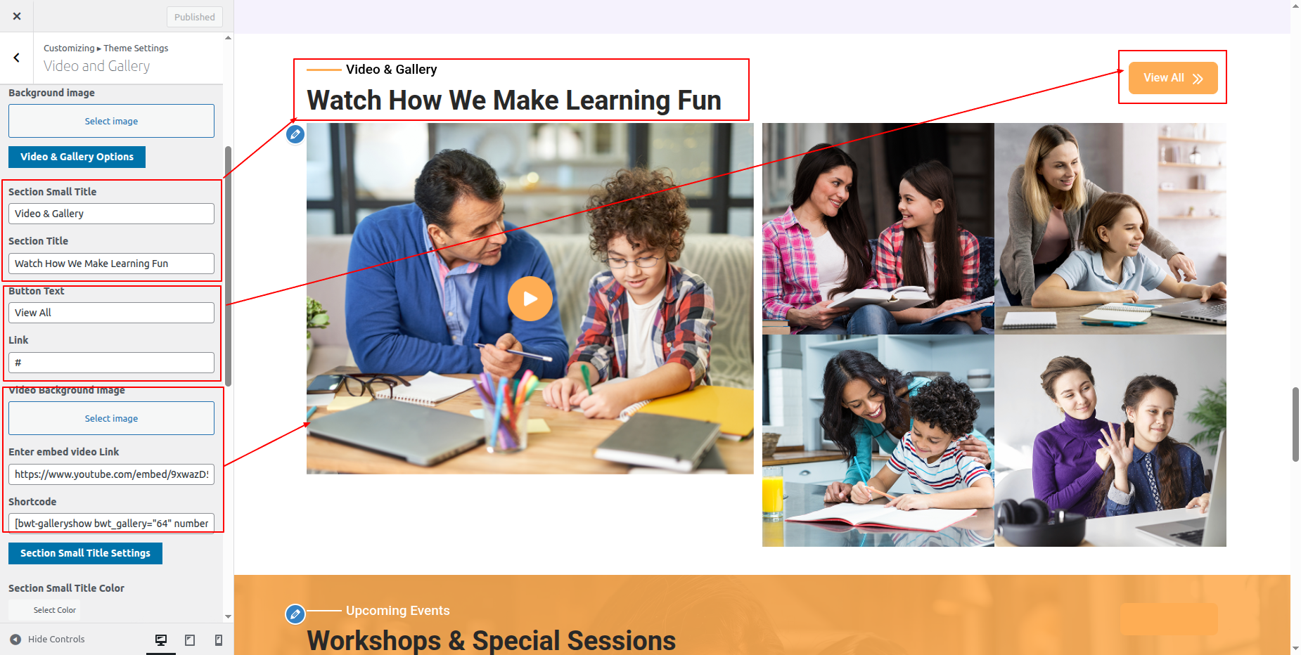 Go to Appearance >> Customize >> Theme Settings >>Video and Gallery Section
