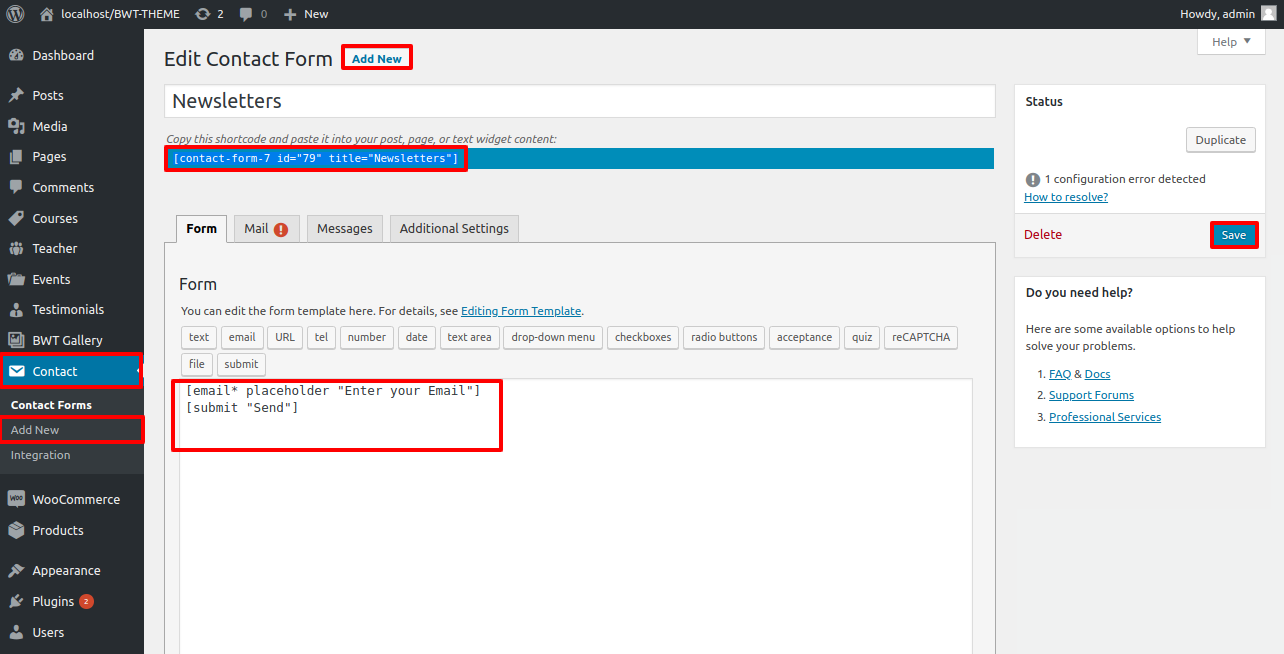 Go to Dashboard >> Contact >> Add New.