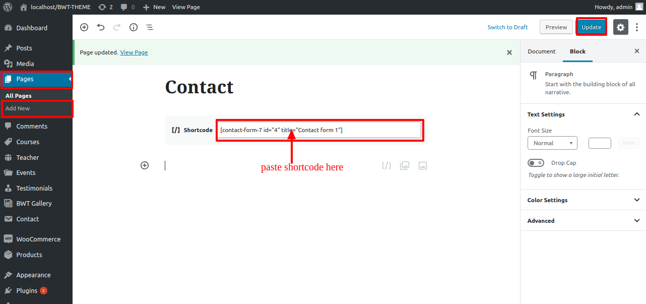 The Contact Form 7 component must be uploaded and turned on. On the dashboard following installation, there will be a contact choice.