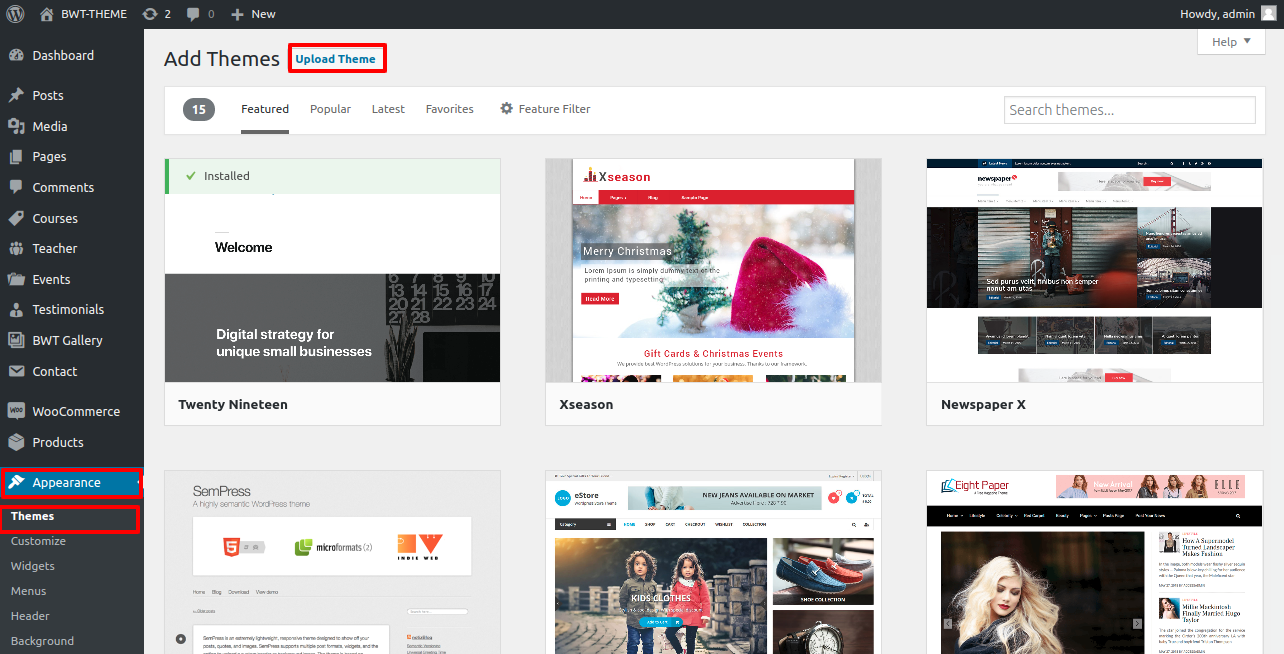 3. Choose the button for theme upload.