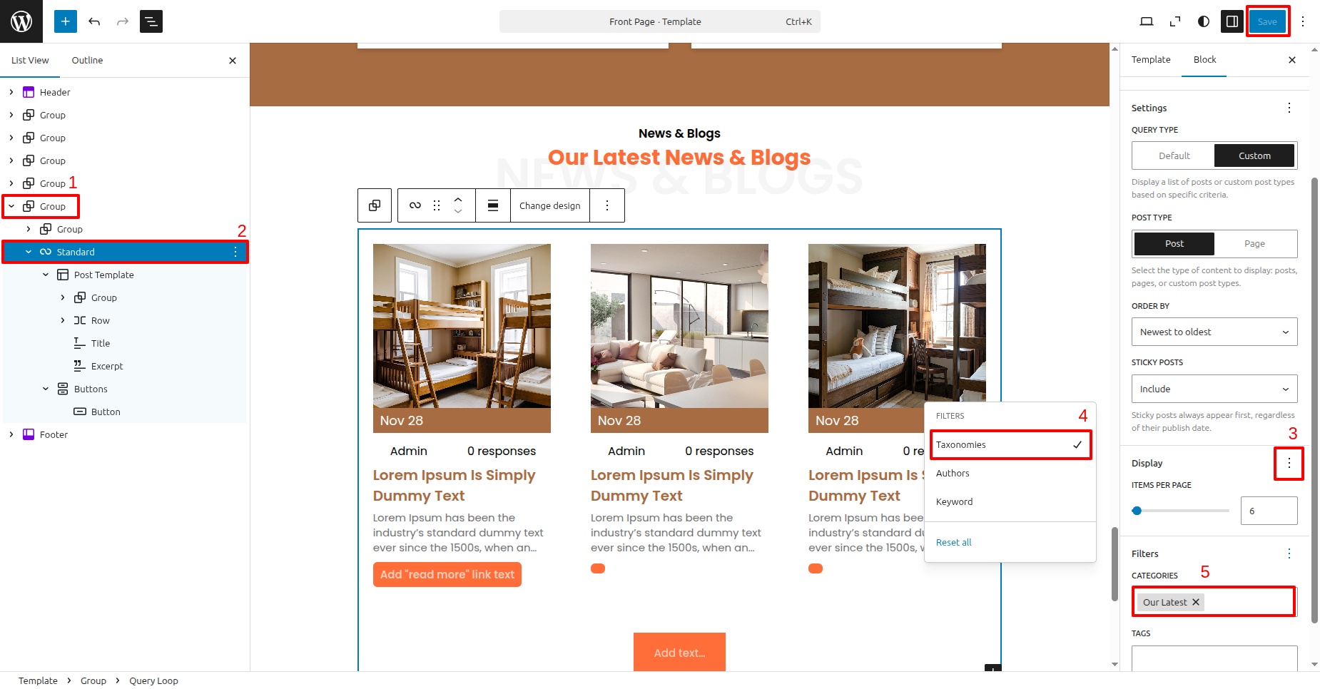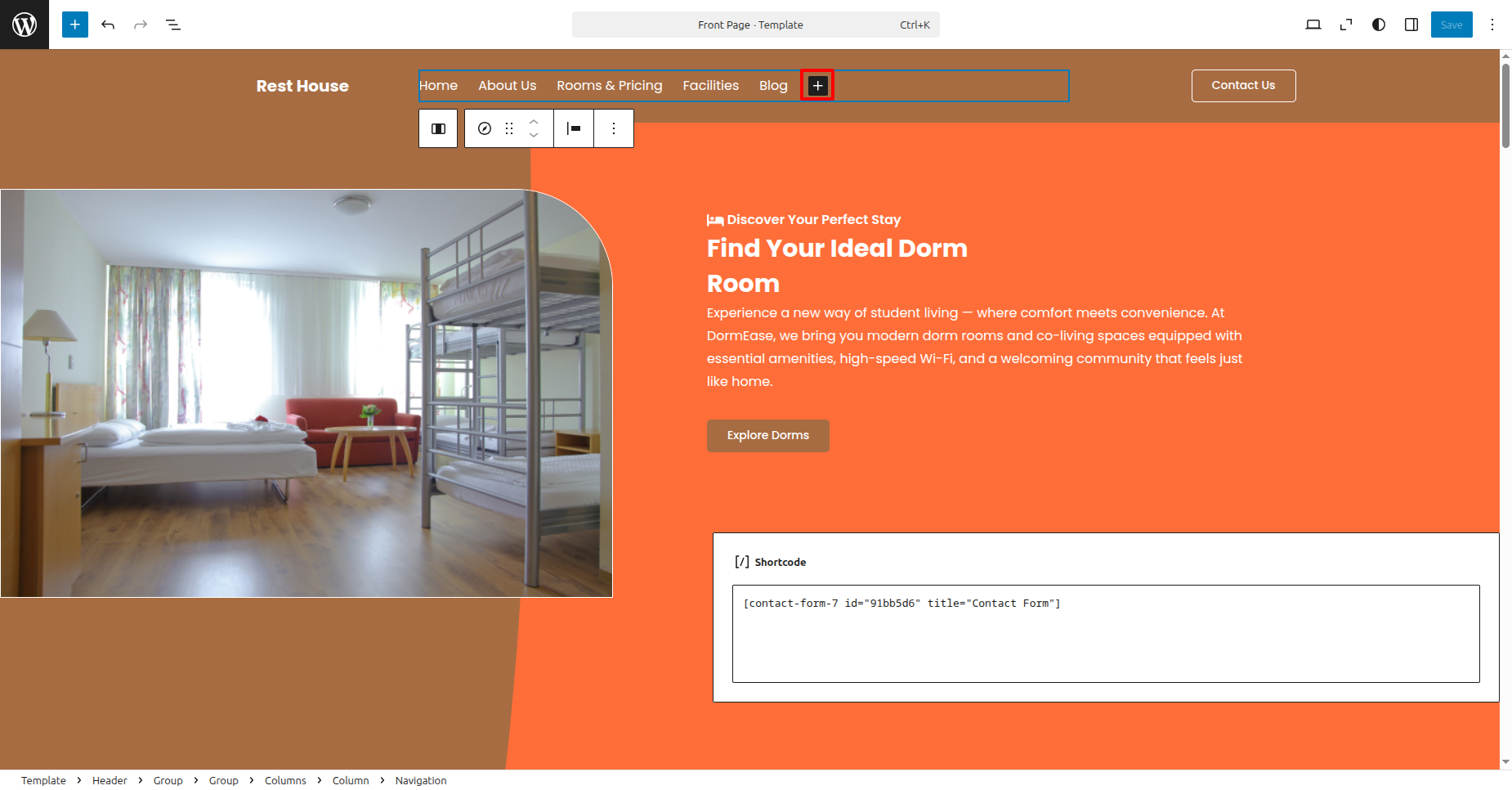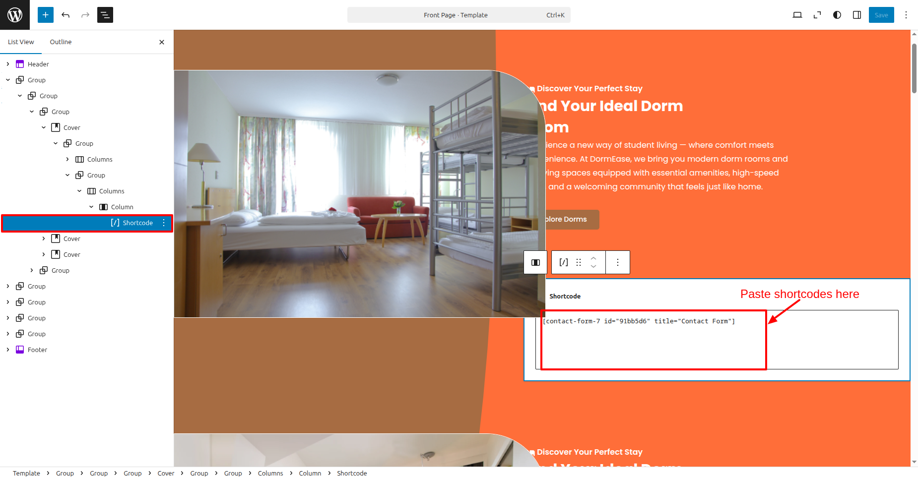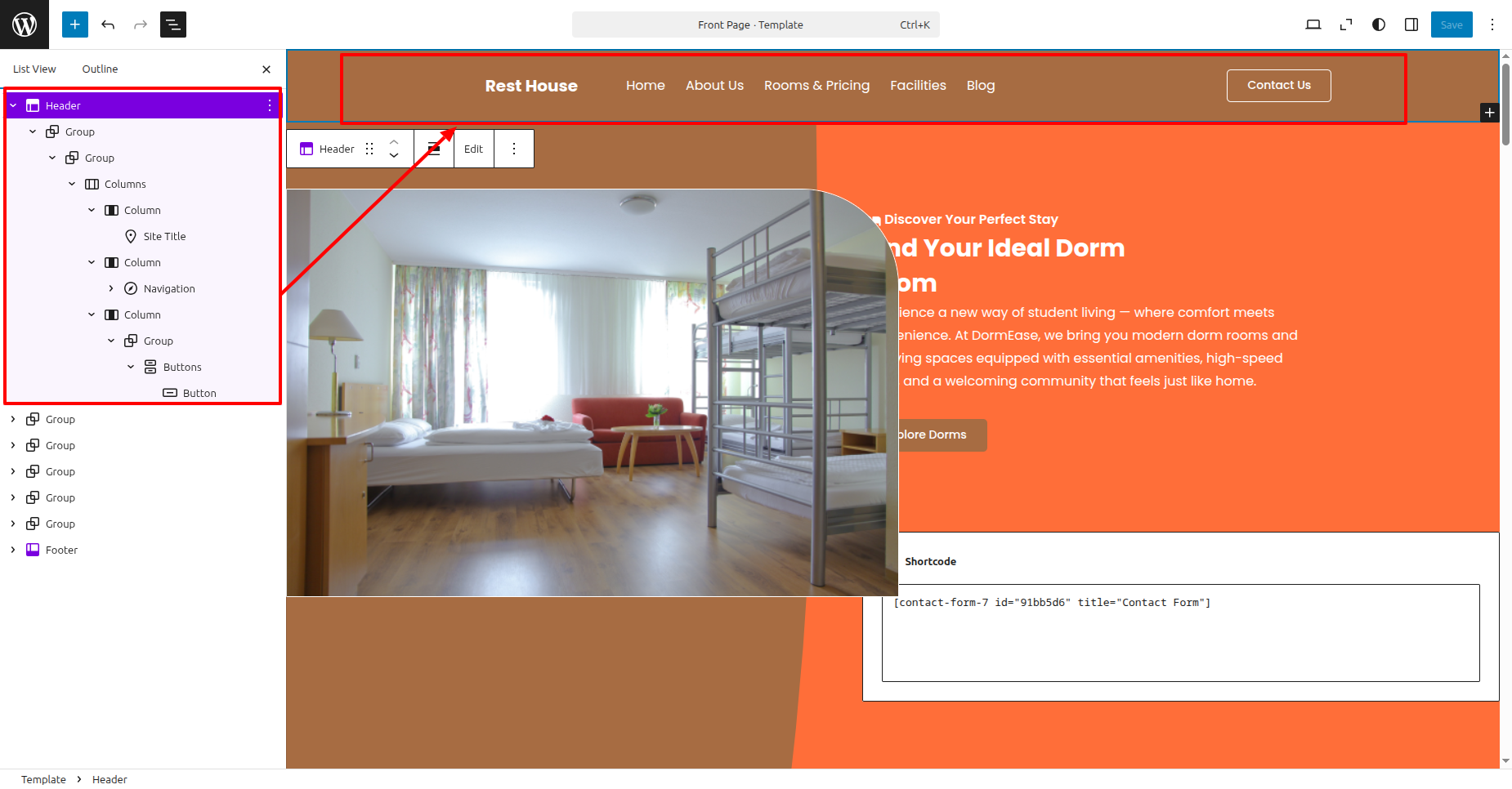Visit Dashboard >> Editor >> click on >> Group Popular Dormitories